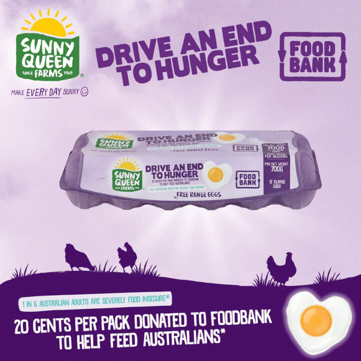 SUNNY QUEEN IS ‘EGG-STREMELY’ PROUD TO HAVE PARTNERED WITH FOODBANK AND MAJOR RETAILERS TO HELP RAISE FUNDS TO FEED AUSSIES IN NEED