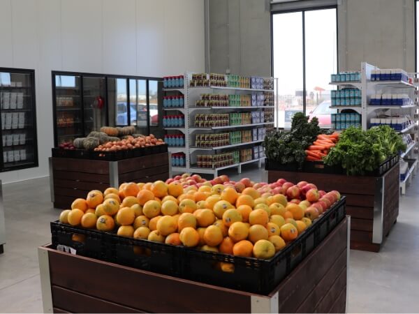 We have options for varying team sizes at our warehouses as well as on board our Mobile Supermarket Bus.